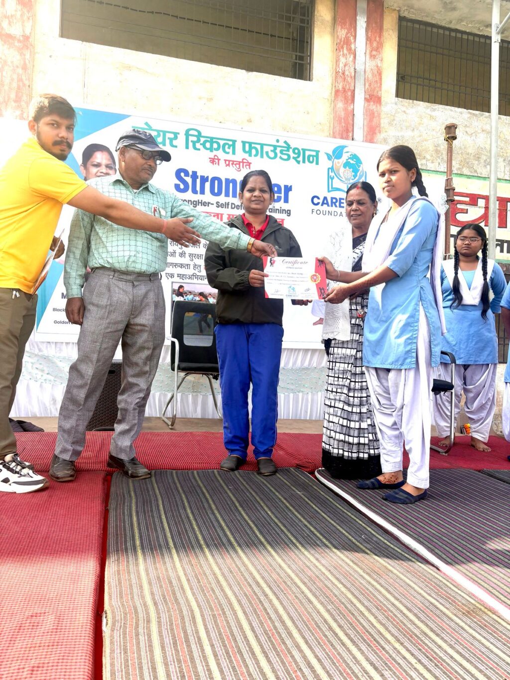In this program, Secretary of Care Skill Foundation, Kendrish Sahu, Sunil Jangde, Renuka Verma, Anita Dhiwar, Yaman Sahu, Deepak Sahu, Anita Sahu, Bhumika Sahu, Hema Manikpuri, Prakash Chand Kurre, Avendra Kumar, Harishwar Das, Bhuneshwari Bagh, Roshni Netam, Priyanka Patel, P. Sharma, Principal of Higher Secondary School, Govind Ram Dhruv and many other dignitaries were present.