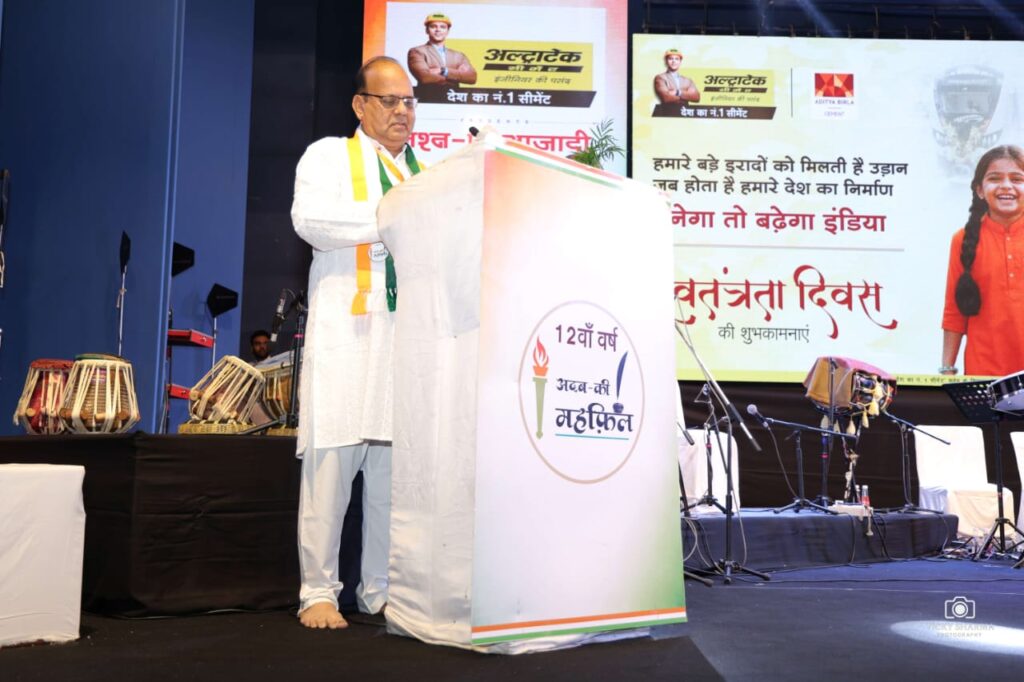 Indore (Team Newsbuddy). This time Independence Day and Shri Krishna Janmashtami came together and on this occasion Adab Ki Mehfil organized a gathering of songs in Labh Mandapam in which along with the songs of patriotism, the colour of Krishna devotion was also seen. Tricolours were also distributed to the audience sitting in the hall, which they waved and enjoyed the songs. The tricolours waving with the rhythm of the songs filled the atmosphere with enthusiasm. The audience wearing tricolour dupatta around their neck also danced to some songs.