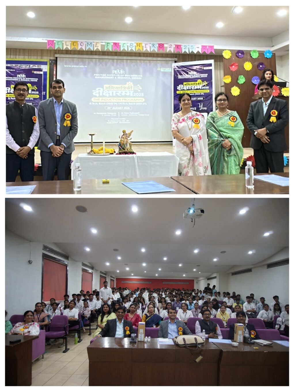 Indore(Team Newsbuddy): Prestige Institute of Engineering, Management and Research (PIEMR) hosted its “Abhiyantriki Deeksharambh 2025 (Invocation Ceremony 2025)” to welcome the newly admitted students formally. In his keynote address, PIEMR Senior Director Dr. Manoj Kumar Deshpande reflected on the illustrious journey of the Prestige Group and the invaluable contribution of its founder, Padmashri Neminath Jain. He encouraged students to equip themselves with future-ready skills, particularly in Artificial Intelligence, Programming, and Personality Development.